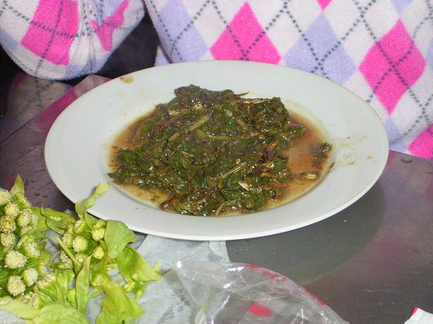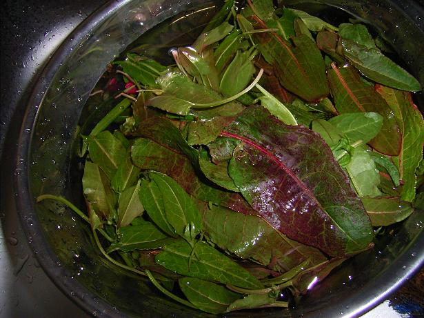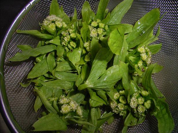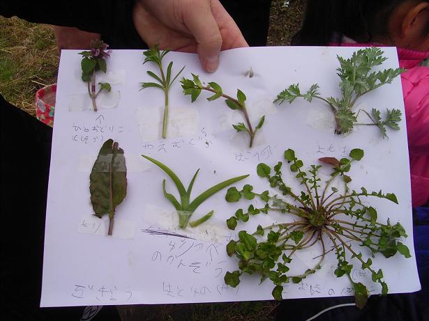 お昼頃になると雲行きが怪しくなってきたので、近くの吉岡地区センターに移動。そこの調理室をお借りして、カンゾウのマヨネーズ和え、フキノトウの茎炒め、スイバ炒め、ナズナのお浸し、そしてレンゲ、コオニノタビラコ(春の七草のホトケノザ)の天ぷら、ノビルの素揚げを調理して提供、参加者も野草の意外な美味しいさに驚いていました。