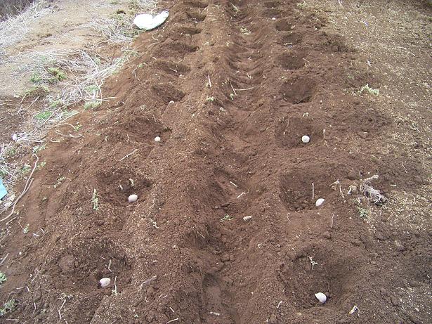 まずはトラクターで耕し、種薯をカット、切り口にワラの灰をまぶし、畑に40cm間隔で植えていきます。初夏には美味しいジャガバタが食べれるかな?89f18c39.jpeg