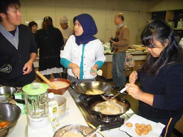 ef199a9f.jpegインドネシア留学生や日本人講師&スタッフが作ったテンペ料理がテーブルに並びました。b3d4d91a.jpegマリアさんは卵入り揚げテンペ、トリさんはテンペ入りインドネシア風卵焼き、その他テンペ入り菓子・押し寿司・揚げテンペの餡かけなどがテーブルを飾っています。