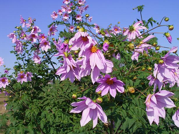 ebeddf2d.jpeg初冬の風が吹くと、畑の横で花を咲かせるのが・・・皇帝ダリアです。今年は台風の影響で一旦は倒れたのですが、不屈の精神で再び立ち上がってきました。花は薄紫の可憐な花、他に花が少ない季節なので、花アブたちが蜜と花粉を求めて群れていました。この皇帝ダリアを植えた地主さんのお婆さんは今年なくなったけど、ダリアは今年も空に向かって咲いてくれました。