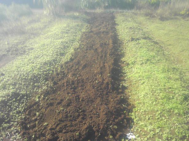 9月に掘り残したサツマイモが1個・・・ 5410e012.jpegそれも手の平サイズオーバー!それに鍬をかけてしまっていました。 もったいないけど、ま、売るものでないからいいか!と重いながら掘り出しました。写真は草の芽が出ている畑の一部を耕した写真と掘ったイモです。