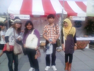 アフリカの国を支援している団体のブースではカラフルな衣装がならび、アンデスの国を支援しているブースでは結構いい値段のアルパカの織物が展示されていました。飲食コーナーではインドネシア料理のナシゴレンやサテを食べ、ビールに食指が動いても、我慢しながらブースを回っていました。写真は熱帯林行動ネットワークのブース前です。