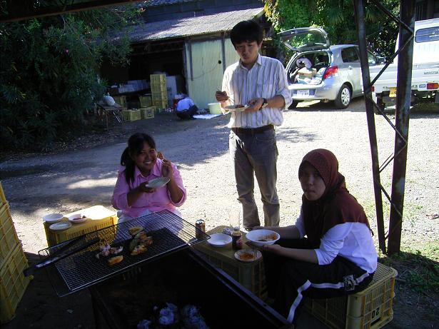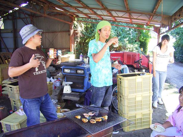 それでは今の地チャイの田んぼは??と言いますとブンブン派。これはスズランテープを縒らずに竹に結んで田んぼの端から端まで張ります。すると、目久尻川に沿って吹いてくる風にテープが振動してブーン、バタバタと音をたててスズメを驚かせる仕組みです。まあ、地チャイの田んぼのイネはスズメが食べにくいサトジマンだから大きな被害は出ないんですがね。