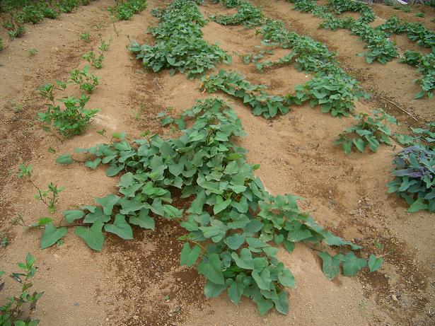 梅雨の間は雨があまり降らなかったのに、夏になったら雨が多いですね。地チャイの畑も日照りで生長が遅れていたのが、漸く順調になってきました。ただ、一部に順調でないものが・・・ それは8月のイベントで使うことになっている藍なんです。原因は根切り虫、これはこがね虫などの甲虫の幼虫の総称なんだけど、こいつらが藍の根を食べてしまって枯らしてしまうのです。