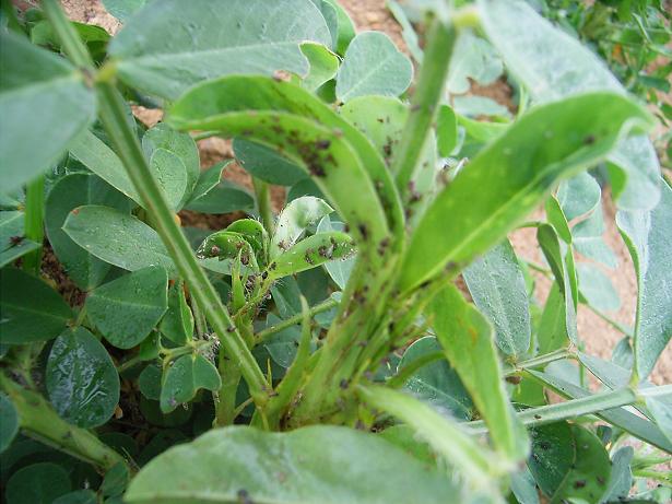 続いての調子がいまいちなのは落花生です。こっちは芽の部分にアリマキという害虫がたかって樹液を吸ってしまい生長を邪魔しています。