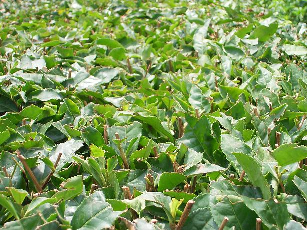 子ども達がお茶摘み体験を行なった茶畑も、きれいに刈り込まれて来年のお茶摘みを待つ姿になっていました。写真は今日のお茶の樹の様子です。