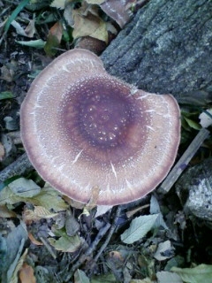 その後ツリーハウス横に置いてあるシイタケのホダ木置き場をのぞくと結構大きなシイタケが出ていました。その中から自分で菌を植えたホダ木を見つけると8個のシイタケが顔を出していました。それプラス地チャイ会員さんのホダ木を引き取っていきました。