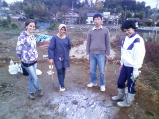 その後、臼井牧場で臼井さんに精米したてのお米を献上、秘密基地P.J.の辻くんと会ってシイタケの原木を託されて綾瀬まで運搬、その後畑で宮原さん主催の安納イモの焼きイモとサトウキビ農林15号試食会に参加してきました。久々に食べた(しゃぶった?)サトウキビは爽やかに甘く美味しかったです。ゲスト参加のインドネシア研修生のビビさん、スロバキア研修生のクリスティーナさんもサトウキビや安納イモを美味しくいただいていましたよ。写真は地チャイ・綾瀬支部の宮原さん、佐々木さんと留学生の2人です。