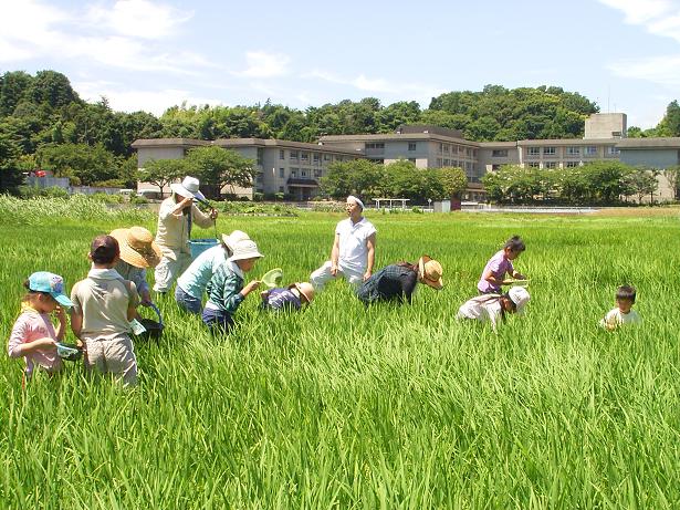 4cf3fb12.jpeg7月18日は田んぼの草取りの日でした。梅雨明け後の猛暑の田んぼで集まった親子はまず、スタッフの調理した田の雑草、コナギ炒めの試食。食べた子ども達は意外な美味しさについつい箸が進んでいました。