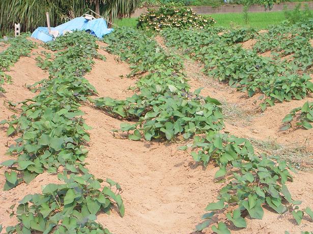 d6ef18da.jpeg灼熱の7月21日、地球チャイルドの畑では草との戦いが行なわれていました。(ボクと草とのですが・・・) サツマイモの畦にはスベリヒユなどの雑草が茂っていました。でも、スポーツドリンク1リットルボトル片手にコツコツ作業をしていると、何とか草を取り終わりました。あー暑かった。写真は草取りの終わったサツマイモ畑です。