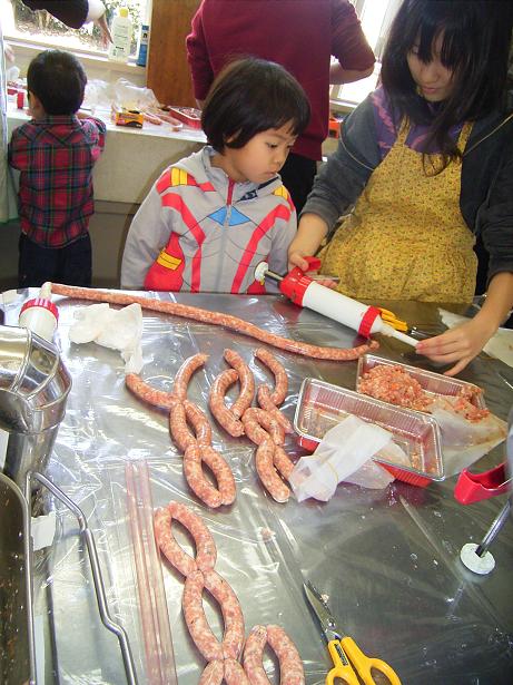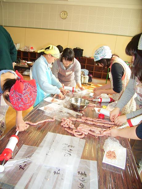中にはソーセージがパンクしてしまった子もいましたが、みんながんばって作っていました。