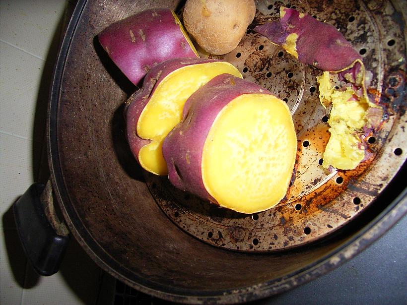 午後は綾瀬市に戻ってサツマイモをチェック!結構イモが土の上まで出ているところもありましたが、そこはカラスらしい口ばしの跡が・・・ 相変わらず目ざとい奴です。試しにそのイモを掘って自宅で食べてみました。味はもう少し!でしたが、あと2週間で味も甘くなると思いますよ。写真は自宅で蒸し焼きにしたおイモくんです。
