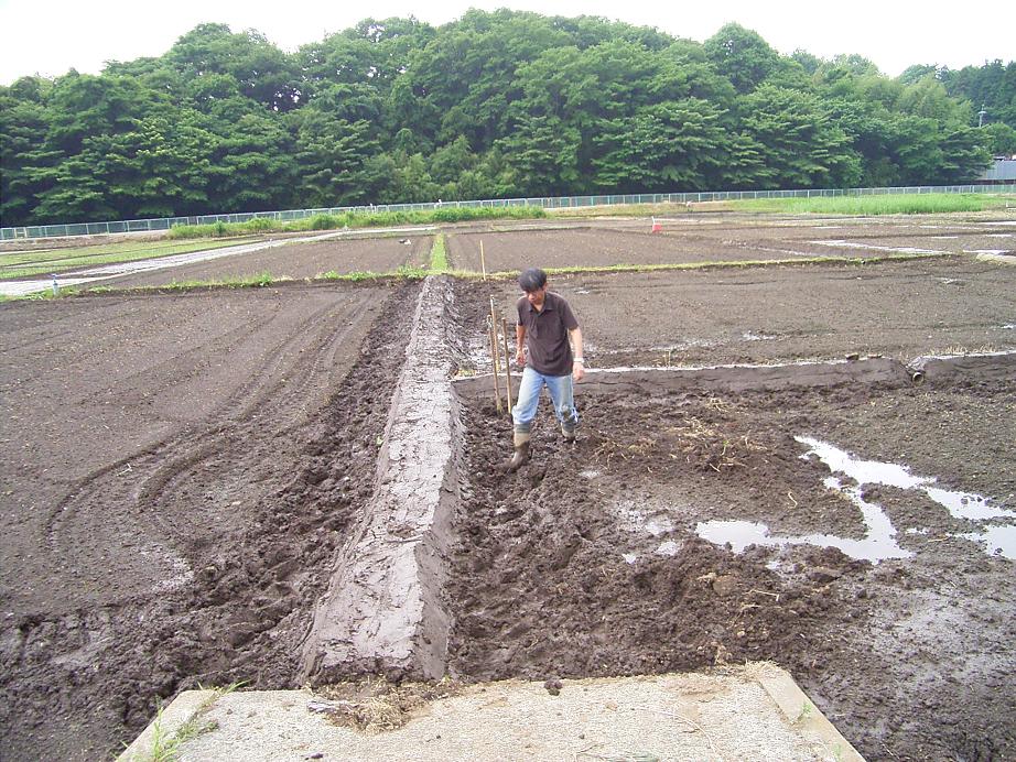 これは一見簡単そうですが実は大変、田んぼを耕した奴が下手くそだったから田んぼに浅い、深いが出来てしまい、場所によって水分が多かったり足りなかったりしてしまうのです。ですから折角泥を練っても固すぎたり柔らかかったりして上手く塗れないことも多いのです。