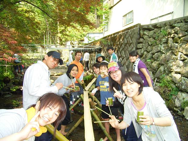 午後からは2グループに別れ、粗茶工場の見学と沢遊び、この時、沢遊びをしながら流し素麺体験も実施しました。参加者は普段やったことのない体験に、そして味に舌鼓を打ってくれました。