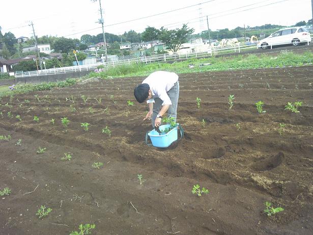 952be75d.jpeg夏休みのイベント、藍染め体験に備えて、畑に藍の苗を植えて来ました。種をまいた時には雨で流されたり、虫に食われたりと、苗の数が足りるのか心配でしたが、心ならずも禁断の農薬をまいて害虫をご遠慮いただき、さらに宮原さんが自宅で育てた苗も分けていただいて、何とか4畝の苗を植えることが出来ました。宮原さん、サンクスです。0c14068a.jpeg