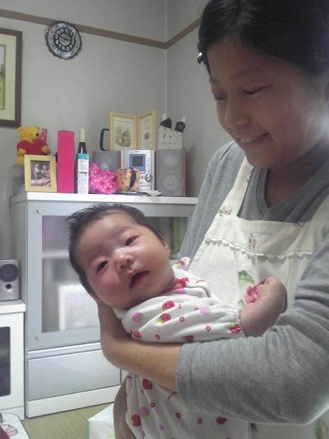 b0d46817.jpeg地球チャイルドのスタッフで、初代会報紙の漫画家であるゆっきぃ~が無事出産されたので、お祝いに行ってきました。ご婦人が一人のところに(旦那さんはお仕事)男一人で行くのはまずいかな??と思ってたまたま授業がなかったインドネシア留学生のハニナさんをお誘いしました。ハニナさんは5人兄妹の長女と言うことで、下の弟妹を面倒見てきたから、赤ちゃんの扱いはなれたものでした。ゆっきぃ~も立派なお母さんの顔になっていましたよ。7a998c7e.jpeg